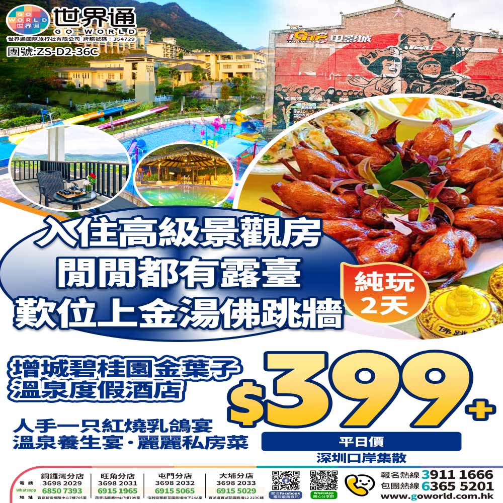 399元起享五星溫泉度假,金葉子酒店2天純玩超值團