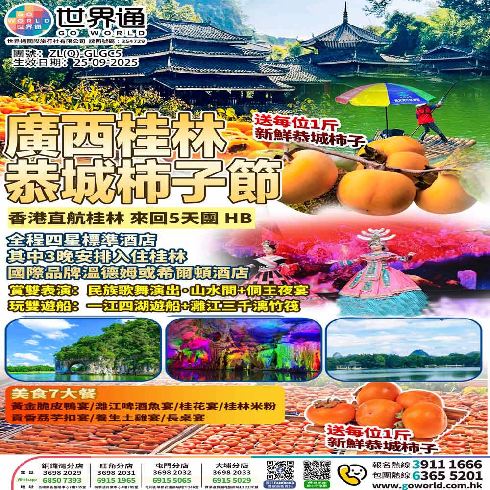 【恭城柿子】抵玩!桂林恭城柿子節5天遊・香港直航來回