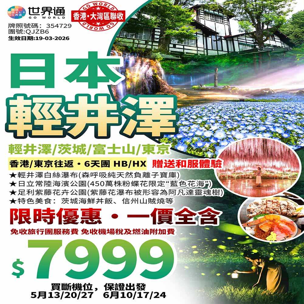 香港直航,東京往返,打卡輕井澤/茨城/富士山/東京,睇季節限定的粉蝶花同紫藤花