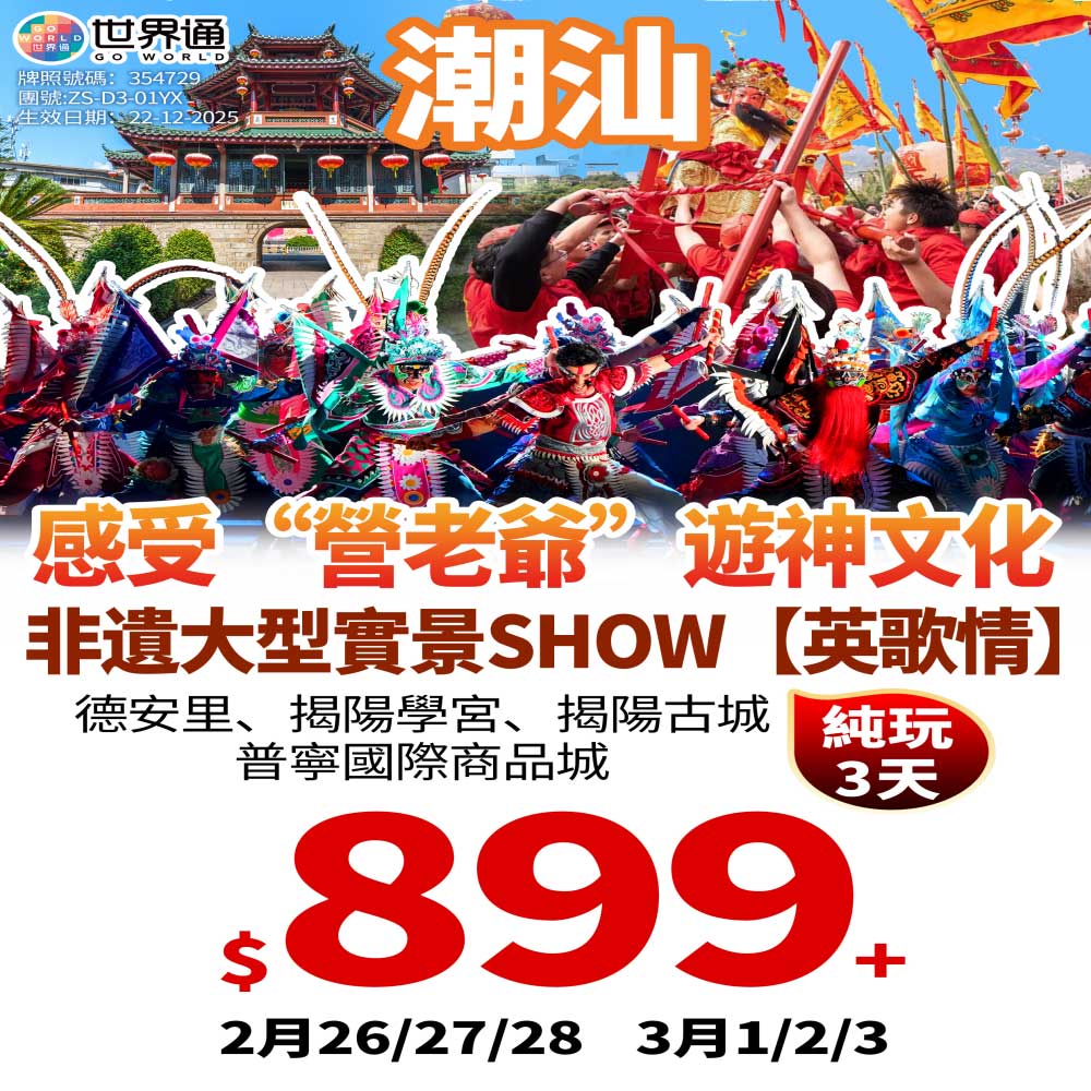 西九龍來回,汕頭/潮州/揭陽/雙海島皆有,牛肉火鍋、海鮮餐、鹵水鵝宴輪番上陣,打卡南澳島、潮州古城、龍湖古寨,美景美食兩不誤