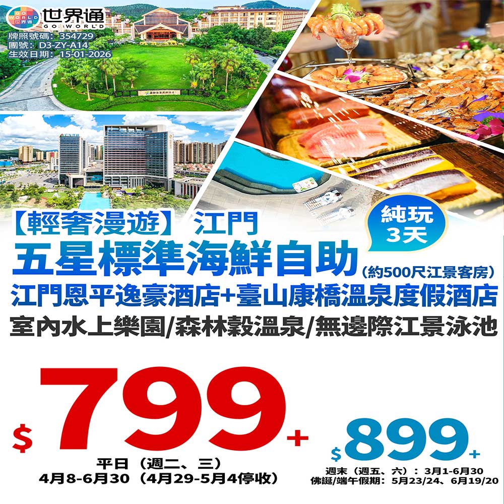 【江門】輕奢漫遊海鮮自助三天