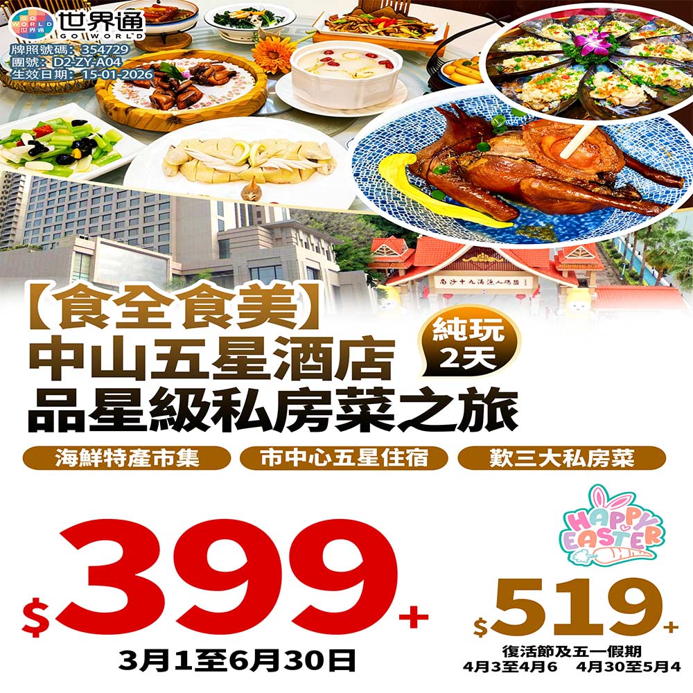 【東莞】全程自助兩晚五星三天